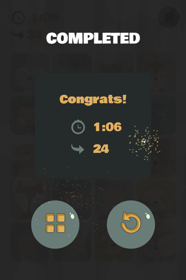 Tap on the cards to match them until you reveal all the pairs. Play against the time and number of moves, or go for the chilling Zen mode. Select from a few board sizes for various difficulty levels.