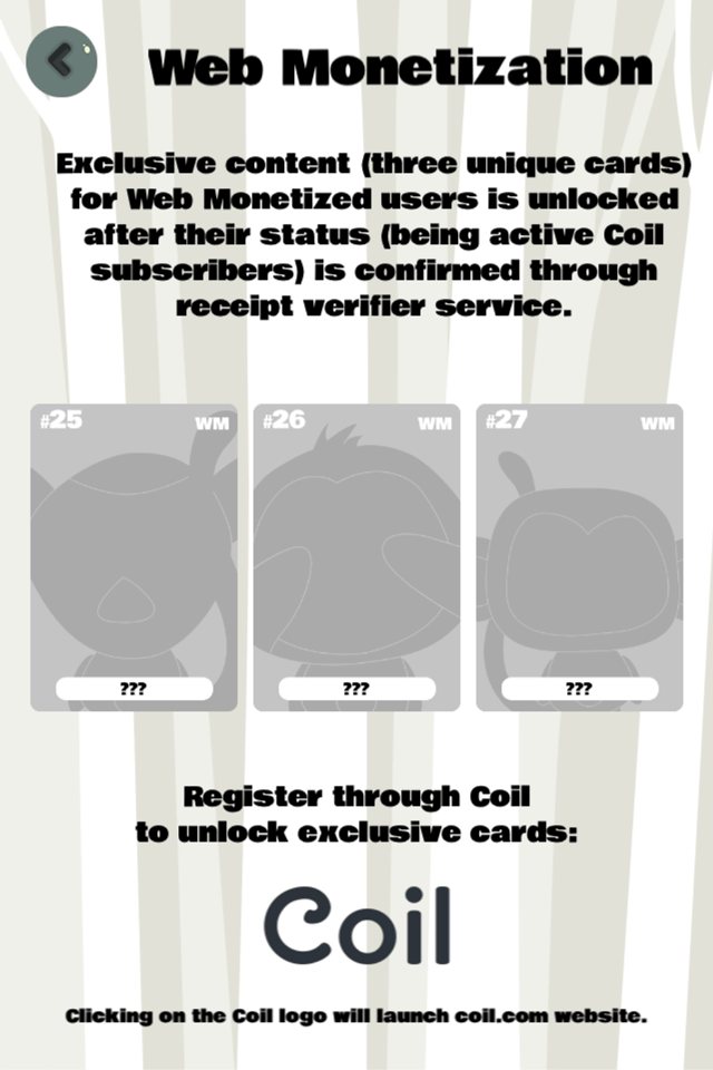 Based on a series of posters Ewa did for our daughter's room, which evolved into a physical card game, and later turned into a mobile one. Unlockable cards via Web Monetization and an NFT. Read the making of blog post for more details.