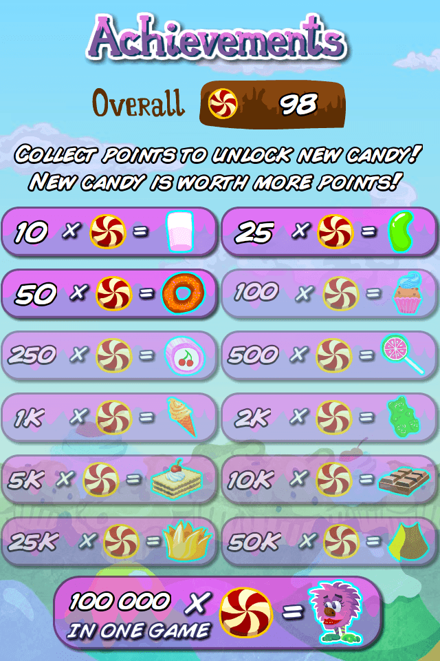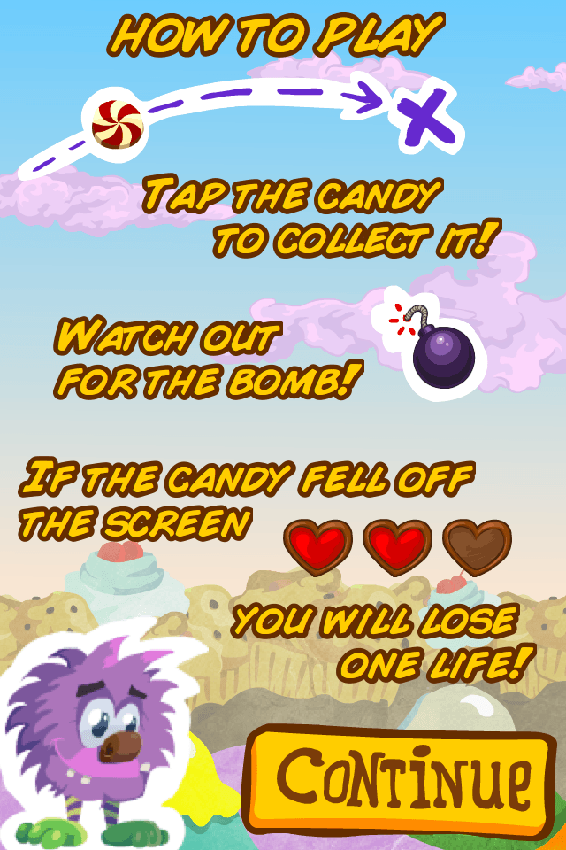 Tap the candy to eat it, be sure not to miss any of them. Watch out for the bombs, they are pretty dangerous!