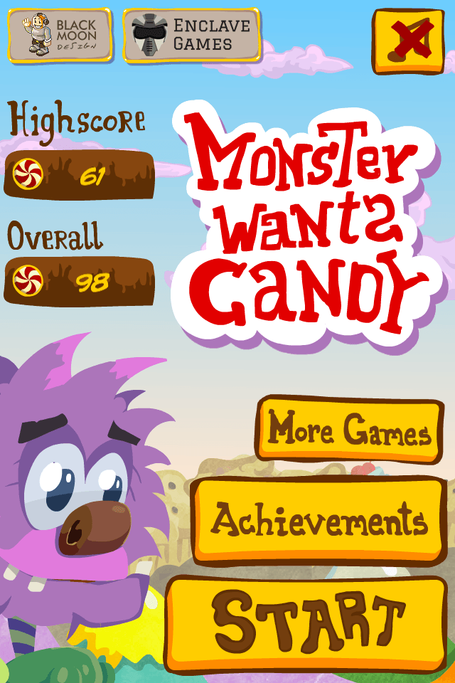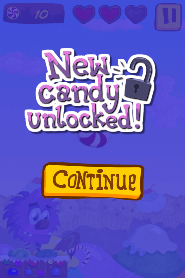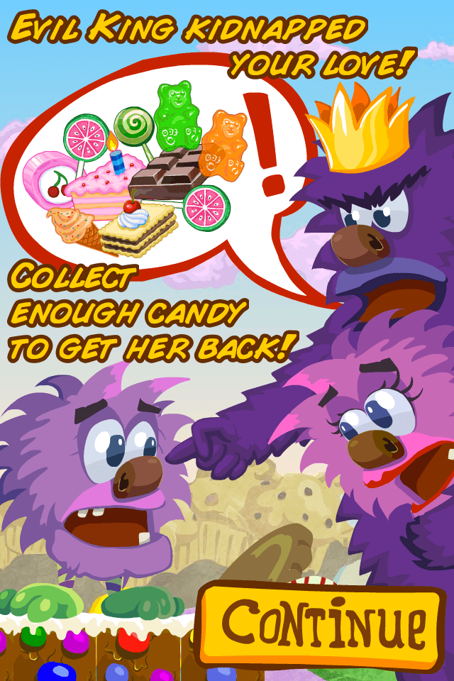 Sweet little Monster loved eating candy with his girl, but evil King kidnapped her. Help our Monster collect enough candy to get her back!